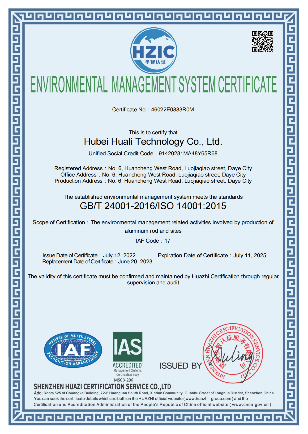 ENVIROMENTAL MANAGEMENTS SYSTEM CERTIFICATE